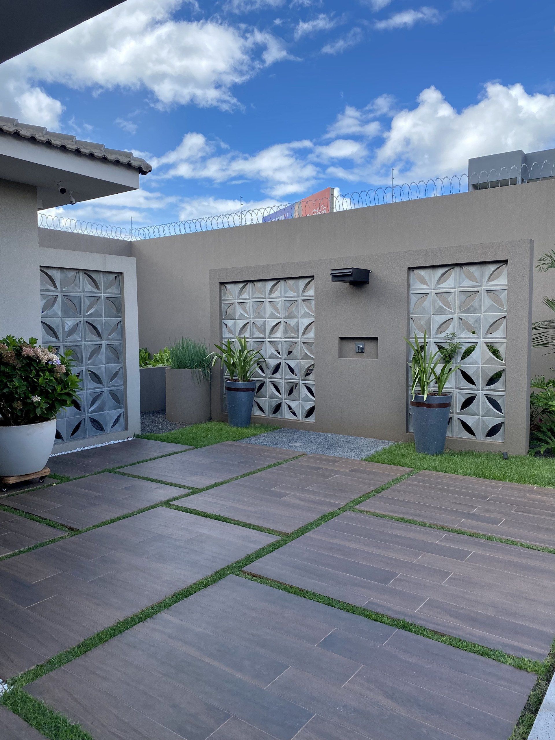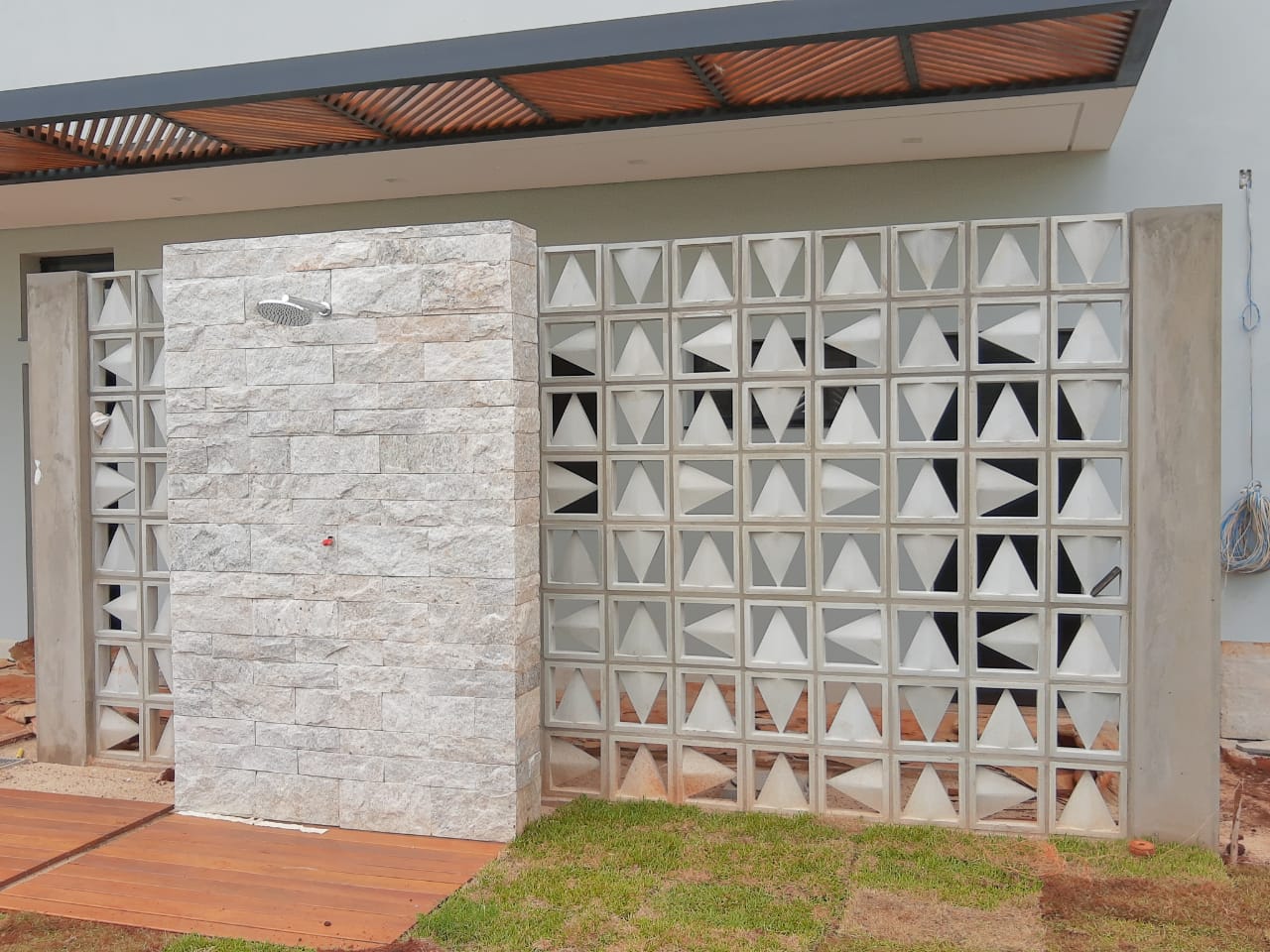 Como vedações externas, em divisas de terrenos, muros, garagens ou outros locais onde se pretende fazer barreira parcial à luz e ao vento.