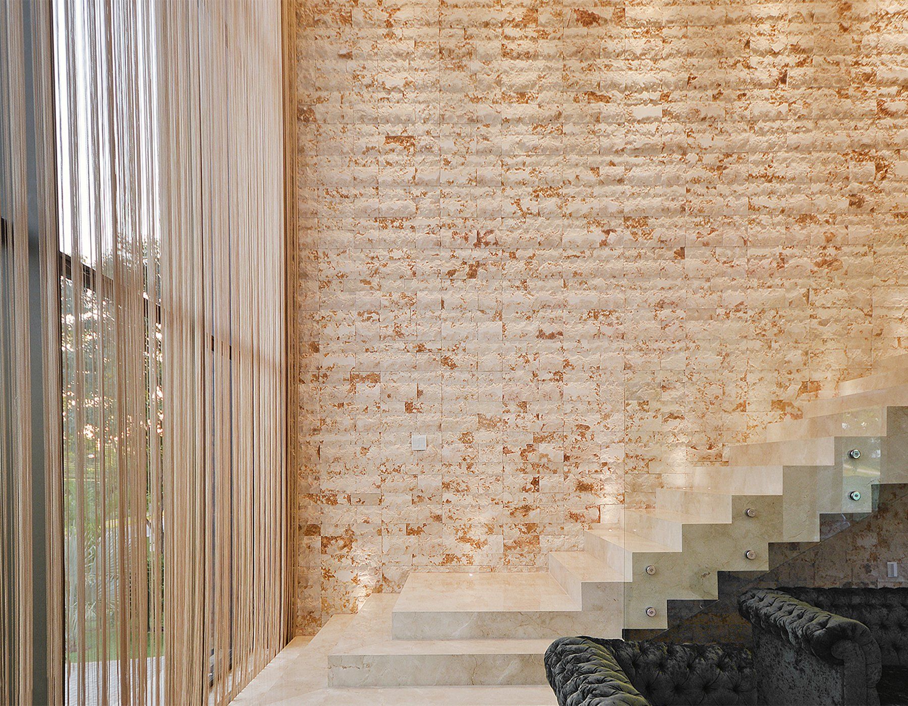 A Pedra Travertino agrega valor e sofisticação a qualquer projeto de arquitetura. Pode ser usada em paredes e pisos de áreas internas e externas de ambientes residenciais e comerciais.